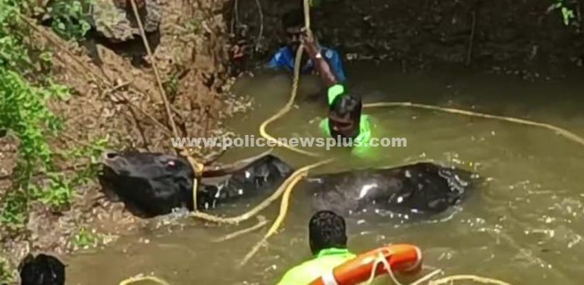 திண்டுக்கல், நத்தம் சேத்தூர் ஊராட்சி சங்கரன்பாறையில் உள்ள கோவில் திருவிழாவை முன்னிட்டு ஜல்லிக்கட்டு போட்டி நடைபெற்றது. இதில் நத்தம் புதுப்பட்டியை சேர்ந்த பழனிவேல்ராஜன் என்பவரின் ஜல்லிக்கட்டு காளை போட்டியில் கலந்து கொண்டு வாடி வாசல் வழியாக வெளியே வந்து போது வீரர்களிடம் பிடிபடாமல் விவசாய நிலப்பகுதியில் சென்ற போது அந்த பகுதியில் இருந்த கினற்றுக்குள் தவறி விழுந்தது. இது குறித்து தகவல் அறிந்த தீயணைப்பு துறையினர் சம்பவ இடத்திற்கு விரைந்து சென்று கிணற்றுக்குள் விழுந்த காளையை நீண்ட நேர போராட்டத்திற்கு பின் பொதுமக்கள் உதவியுடன் கயிறு கட்டி மீட்டனர்.