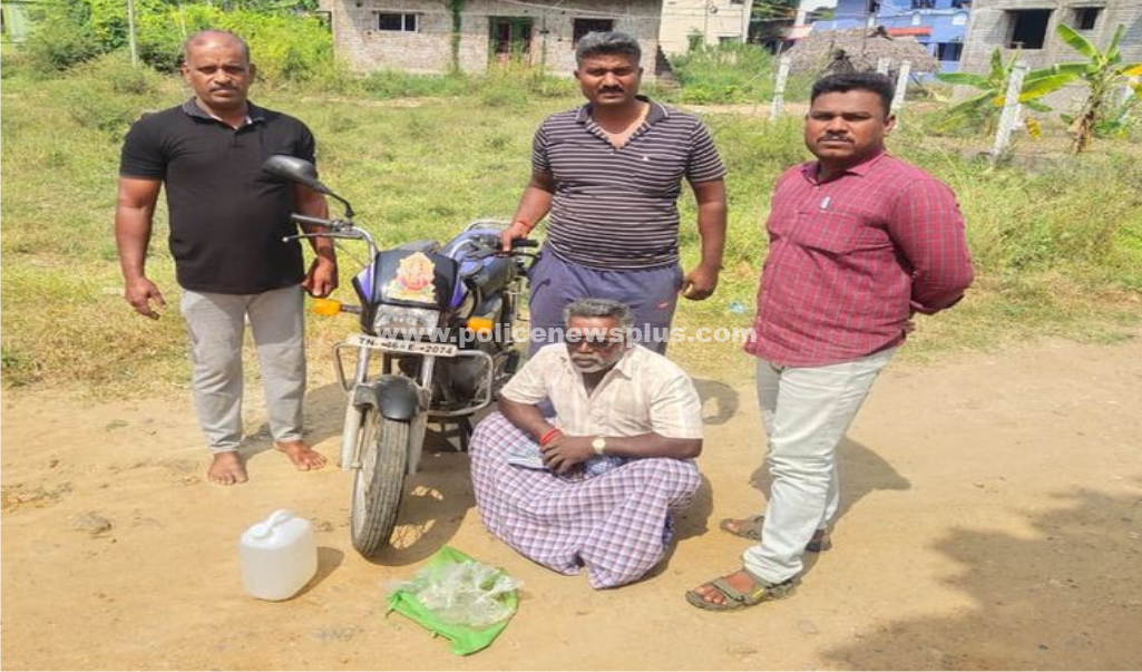 அந்த வகையில் இன்று 16.02.2022-ம் தேதி காரியானூர் வெள்ளுவாடி போன்ற இடங்களில் சிறப்பு ரோந்து அலுவல் புரிந்தும் காரியானூர் கிராமம் அருகே, அரசால் தடை செய்யப்பட்ட நாட்டு சாராயத்தை விற்பனை செய்து கொண்டிருந்த பெரியசாமி என்பரை பெரம்பலூர் மாவட்ட மதுவிலக்கு அமலாக்கப் பிரிவு காவல் உதவி ஆய்வாளர் திரு சரவணகுமார் மற்றும் அவரது குழுவினர், கைது செய்தும் அவர் விற்பனைக்காக பயன்படுத்திய 2 லிட்டர் மதிப்பிலான 20 பாக்கெட் நாட்டு சாராயத்தை கைப்பற்றி அதே இடத்தில் அழித்தும் நிலையம் வந்து மேற்படி நபர் மீது வழக்குப்பதிவு செய்தனர்.
