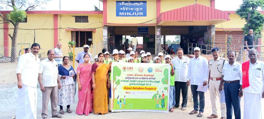 திருவள்ளூர் : திருவள்ளூர் மாவட்டம் மீஞ்சூர் பேரூராட்சியில் மாவட்ட நிர்வாகம் மற்றும் மாசுக்கட்டுப்பாட்டு வாரியம் இணைந்து நெகிழிக் கழிவுகள் சேகரிப்பு மற்றும் தூய்மைப்படுத்தும் பணிகள் நடைபெற்றன. மீஞ்சூர் பேரூராட்சி தலைவர் ருக்மணி மோகன்ராஜ், பேரூராட்சியின் தூய்மை பணிகளை தொடங்கி வைத்தார். இதில் துணைத் தலைவர் அலெக்சாண்டர், செயல் அலுவலர் மகேஸ்வரி, வார்டு உறுப்பினர் சுகன்யா வெங்கடேசன், மோகன்ராஜ், ஏ.சி. ராஜேந்திரன், ஏ.கே.சுரேஷ், கதிர்வேல், ரயில்வே காவல் அதிகாரி கங்காதரன்.மற்றும் பேரூராட்சி பணியாளர்கள் கலந்து கொண்டனர்.