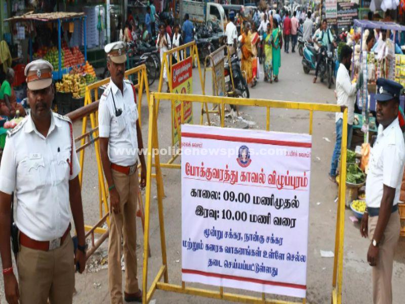 அதாவது விழுப்புரம் எம்.ஜி.சாலையில் இருந்து காமராஜர் சாலை வரை ஒரு வழிப்பாதையாகவும், அதேபோல் காமராஜர் சாலையில் பெரியார் சிலையில் இருந்து திருச்சி சாலை வரை ஒரு வழிப்பாதையாகவும் மாற்றப்பட்டு முக்கிய இடங்களில் தடுப்புக்கம்பிகள், பேரிகார்டுகள் வைக்கப்பட்டுள்ளன. இதனை விழுப்புரம் துணை போலீஸ் சூப்பிரண்டு பார்த்திபன் மேற்பார்வையில் போக்குவரத்து போலீஸ் இன்ஸ்பெக்டர் திரு. வசந்த், தலைமையிலான போக்குவரத்து போலீசார் தீவிரமாக கண்காணிக்கும் பணியில் ஈடுபட்டு வருகின்றனர். எனவே இந்த சாலைகளின் வழியாக காலை 9 மணி முதல் இரவு 10 மணி வரை 3 சக்கர, 4 சக்கர வாகனங்கள் மற்றும் கனரக வாகனங்கள் உள்ளே செல்ல தடை செய்யப்பட்டுள்ளது. இருசக்கர வாகன ஓட்டிகள், விதிமுறைகளை பின்பற்றி ஒருவழிப்பாதையை மட்டுமே பயன்படுத்த வேண்டும். இதை மீறினால் சம்பந்தப்பட்டவர்கள் மீது உரிய நடவடிக்கை எடுக்கப்படும் என்று போக்குவரத்து போலீசார் எச்சரிக்கை செய்துள்ளனர்.
