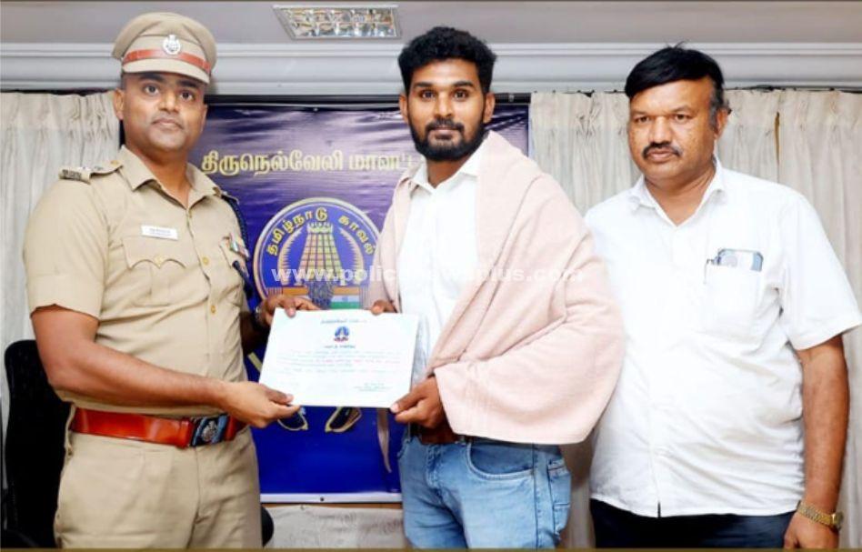 இது குறித்து தகவல் அறிந்த திருநெல்வேலி மாவட்ட காவல் கண்காணிப்பாளர் திரு. N.சிலம்பரசன்., அவர்கள் டென்னிஸ் பால்சிங்யை நேரில் அழைத்து அவருடைய நேர்மையை பாராட்டும் வகையில் பொன்னாடை அணிவித்து பாராட்டு சான்றிதழ் மற்றும் வெகுமதி வழங்கி கௌரவித்தார்.