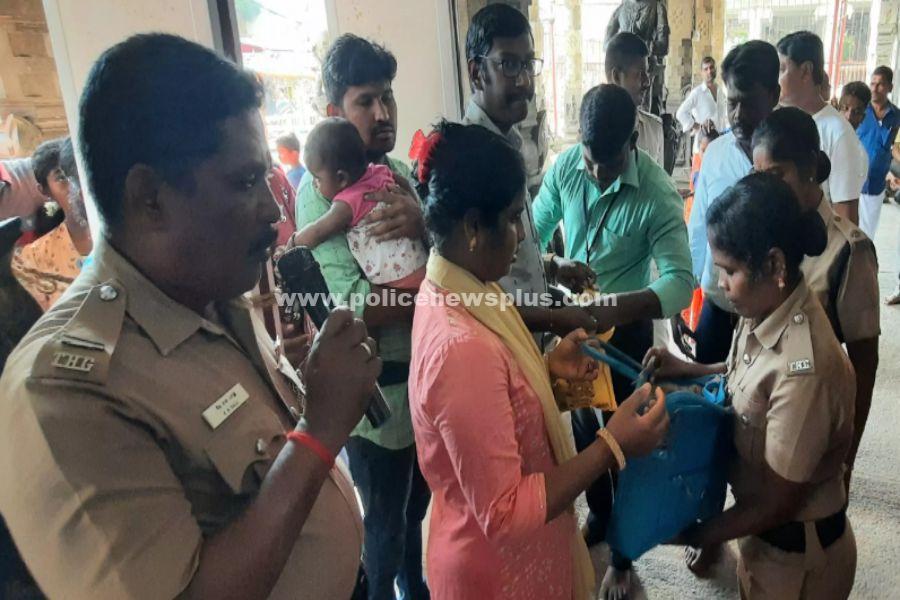 ராமநாதபுரம் : அகில இந்திய புண்ணிய தலங்களில் ஒன்றாக கருதப்படும் ராமேசுவரம் ராமநாதசாமி கோவிலுக்கு தினமும் தமிழகம் மட்டுமல்லாமல் இந்தியாவின் பல்வேறு மாநிலங்களில் இருந்து ஏராளமான பக்தர்கள் வந்து செல்கின்றனர். மும்பையில் கடல் வழியாக தீவிரவாதிகள் ஊடுருவி தாக்குதல் நடத்திய சம்பவத்தில் இருந்தே ராமேசுவரம் ராமநாதசாமி கோவிலுக்கு வரும் பக்தர்கள் செல்போன், கேமரா பொருட்கள் கொண்டு செல்ல தடை அமலில் இருந்து வருகிறது. இந்த நிலையில் தமிழகம் முழுவதும் உள்ள கோவில்களில் பக்தர்கள் செல்போன் கொண்டுசெல்ல மதுரை ஐகோர்ட்டில் தடை உத்தரவு பிறப்பிக்கப்பட்டு உள்ளது. ஐகோர்ட்டு உத்தரவை தொடர்ந்து ராமேசுவரம் ராமநாதசாமி கோவிலில் நேற்று கோவிலுக்கு வந்த பக்தர்களிடம் கூடுதலாக சோதனை செய்யப்பட்டது.