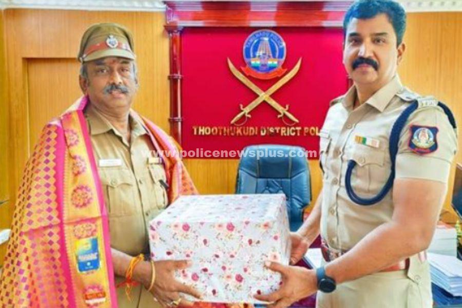 தூத்துக்குடி : தூத்துக்குடி குழந்தைகள் மற்றும் பெண்களுக்கெதிரான குற்ற தடுப்பு பிரிவு காவல்துறை கூடுதல் கண்காணிப்பாளராக பணியாற்றி வந்த திரு. பிரகாஷ் பாபு அவர்கள் சென்னை தமிழ்நாடு சீருடை பணியாளர் தேர்வாணையத்திற்கு காவல்துறை கூடுதல் கண்காணிப்பாளராக பணியிட மாற்றம் செய்யப்பட்டுள்ளார். இதனையடுத்து காவல்துறை கூடுதல் கண்காணிப்பாளர் திரு. பிரகாஷ் பாபு அவர்கள் (06.06.2023) மரியாதை நிமித்தமாக தூத்துக்குடி மாவட்ட காவல் கண்காணிப்பாளர் டாக்டர் எல். பாலாஜி சரவணன் அவர்களை சந்தித்து வாழ்த்து பெற்றார். மாவட்ட காவல் கண்காணிப்பாளர் அவர்கள் மென்மேலும் பல பதவி உயர்வுகள் பெற்று வளமுடன் வாழ வாழ்த்தி நினைவுப்பரிசு வழங்கி பாராட்டினார்.