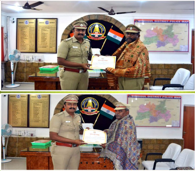 திண்டுக்கல் : (01.08.2022), திண்டுக்கல் மாவட்ட காவல்துறையில், பணிபுரிந்து நேற்று (31.07.2022), ம்தேதியுடன் பணி ஓய்வு பெற்ற சத்திரப்பட்டி காவல் நிலைய சிறப்பு சார்பு ஆய்வாளர் திரு.நீலமேகம், அவர்கள் மற்றும் பழனி போக்குவரத்து காவல் நிலைய சிறப்பு சார்பு ஆய்வாளர் திரு.தங்கராஜ், ஆகியோருக்கு மாவட்ட காவல் கண்காணிப்பாளர் திரு.V.பாஸ்கரன, அவர்கள் பொன்னாடை அணிவித்து பணி பாராட்டு சான்றிதழ்கள் வழங்கி பாராட்டினார்கள்.