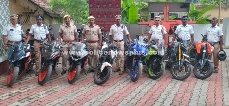மேலும் இருசக்கர வாகனங்களை ஓட்டி வந்த இளைஞர்களுக்கு தலைக்கவசம் அணியாமல் வாகனம் ஓட்டுதல், அபாயகரமாக (rash) வாகனம் ஓட்டுதல், மூன்று நபர்கள் பயணம் செய்தல், ஓட்டுநர் உரிமம் இன்றி வாகனம் ஓட்டுதல் பிரிவுகளில் வழக்குகள் பதிவு செய்யப்பட்டு மொத்தம் ₹95500 அபராதம் விதிக்கப்பட்டு பறிமுதல் செய்யப்பட்டது.