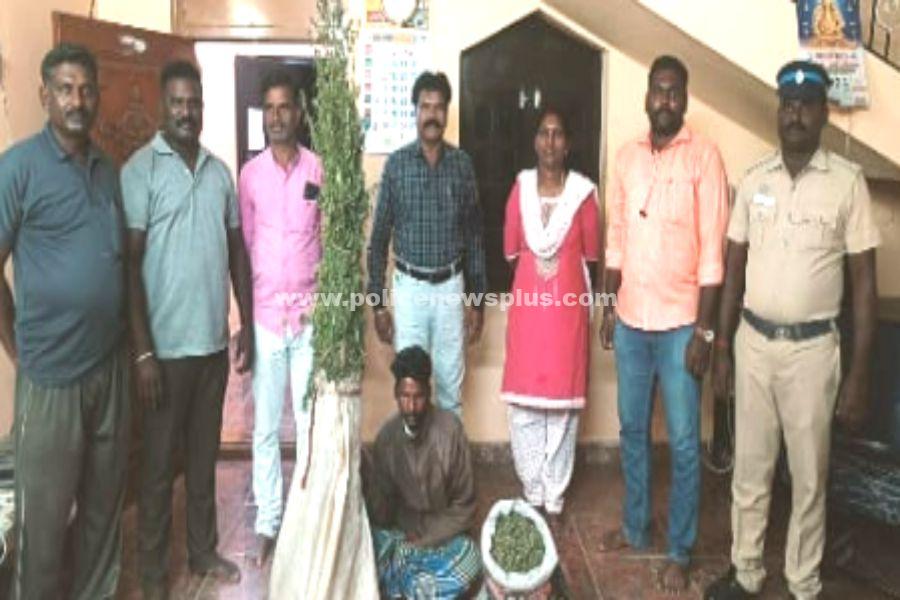 கள்ளக்குறிச்சி : கள்ளக்குறிச்சி மாவட்ட காவல் கண்காணிப்பாளர் திரு.P.பகலவன் இ.கா.ப., அவர்களின் உத்தரவுப்படி கள்ளக்குறிச்சி மாவட்டத்தில் சட்டவிரோதமாக கஞ்சா கடத்தல் மற்றும் விற்பனையில் ஈடுபடுபவர்களை கட்டுப்படுத்த தனிப்படை அமைத்து மாவட்டம் முழுவதும் அதிரடி சோதனையில் ஈடுபட்டு வருகின்றனர். இந்நிலையில் (30.12.2022), ம் தேதி அதிகாலை முதல் கல்வராயன் மலைப்பகுதில் மதுவிலக்கு அமலாக்கு பிரிவு துணை காவல் கண்காணிப்பாளர் திரு.ராவிச்சந்திரன் அவர்கள் தலைமையில் தனிப்படை போலீசார் சோதனையில் ஈடுப்பட்டபோது பெரிய பலாபூண்டி கிராம பகுதியில் சட்டவிரோதமாக பயிரிடப்பட்டிருந்த சுமார் 6 கிலோ கஞ்சா செடிகள் கண்டுபிடிக்கப்பட்டு அழிக்கப்பட்டது, கஞ்சா செடிகளை பயிரிடப்பட்ட அதே கிராமத்தைச் சேர்ந்த பாலகிருஷ்ணன்(34) த/பெ பிச்சன், மேல்தெரு என்பவரை கைது செய்து அவரிடம் விற்பனைக்காக வைத்திருந்த சுமார் 2 கிலோ கஞ்சா பறிமுதல் செய்யபட்டு மேற்படி குற்றவாளி நீதிமன்ற காவலுக்கு அனுப்பப்பட்டனர். மேலும் கள்ளக்குறிச்சி மாவட்டத்தில் சட்டவிரோதமாக கஞ்சா கடத்தி சென்றாலோ, பயிர்செய்தாலோ, விற்பனையில் ஈடுபட்டாலோ அவர்கள் மீது சட்டரீதியாக கடும் நடவடிக்கை எடுக்கப்படும் என கள்ளக்குறிச்சி மாவட்ட காவல் கண்காணிப்பாளர் அவர்கள் எச்சரிக்கை விடுத்துள்ளார்.