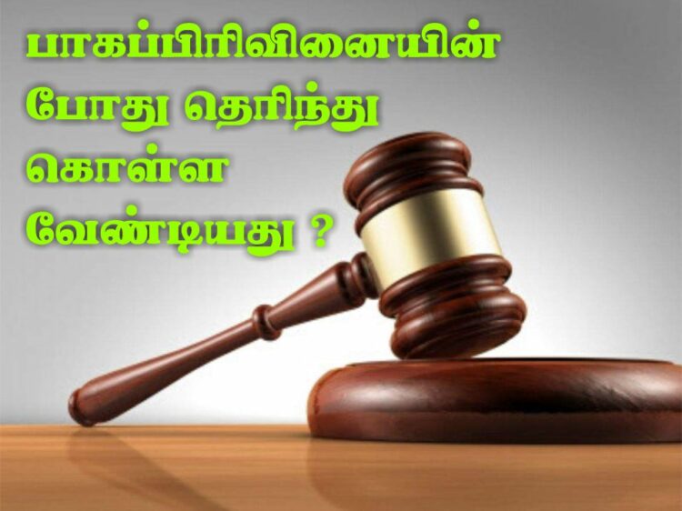 - சரிசமமாக பிரித்து கொள்கிறோம் என்பது பல பங்குகளாக பிரித்து கொண்டு ஒருவருக்கு மட்டும் அதில் மதிப்பு குறைவானதாக சொத்து கிடைத்தால் அந்த பாகபிரிவினையை எதிர்த்து கோர்ட்க்கு சென்று அந்த பாகப்பிரிவினை செல்லாது என்றும் நியாயமாக பிரிக்கவில்லை என்று டிகிரி வாங்கலாம்.