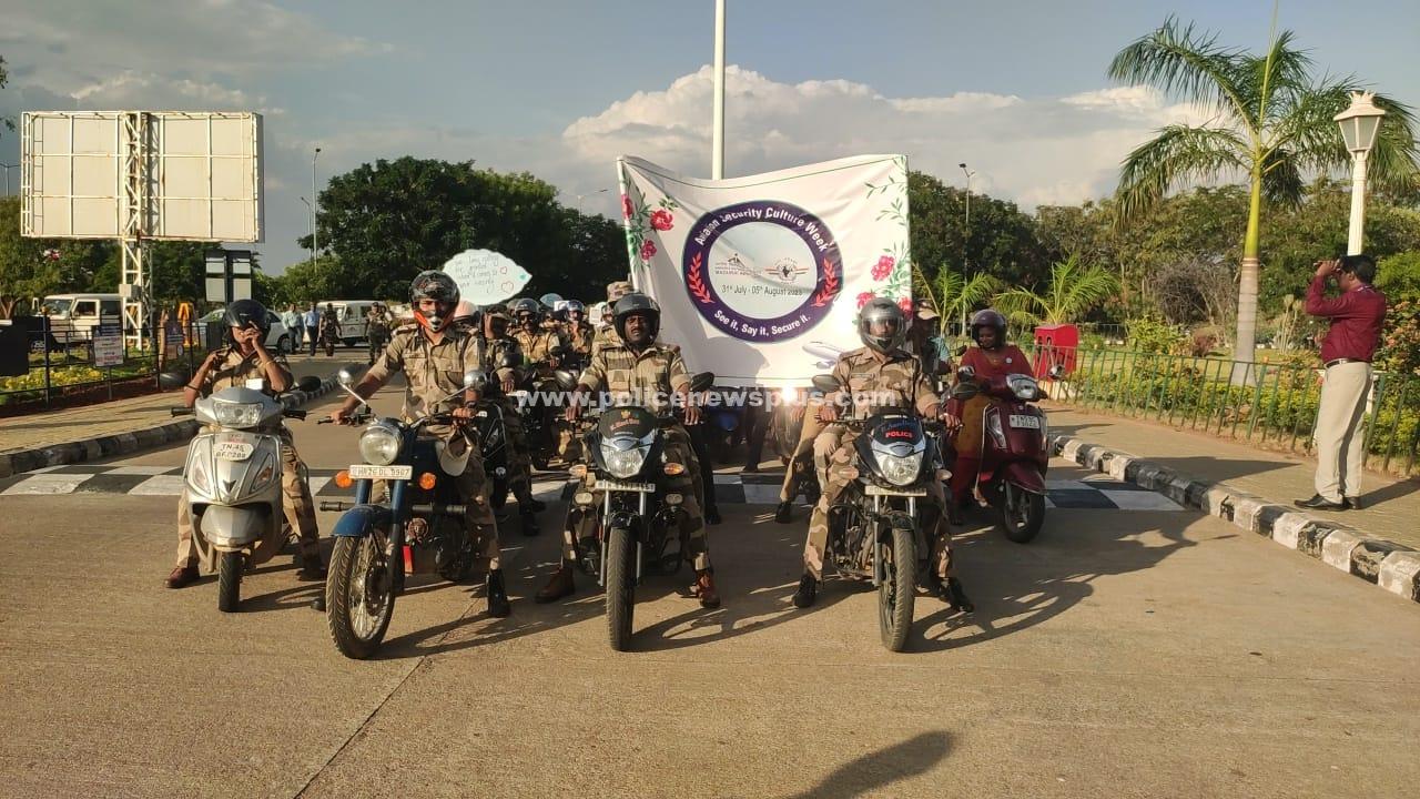 மதுரை : மதுரை விமான நிலையத்தில் விமான நிலைய பாதுகாப்பு பணியகம் சார்பில் , பாதுகாப்பு விழிப்புணர்வு இருசக்கர வாகன பேரணி விழா நடைபெற்றது. விமான நிலையத்தில், துவங்கி மதுரை விமான நிலையத்தில் மத்திய விமான போக்குவரத்து அமைச்சகம் மற்றும் விமான நிலைய பாதுகாப்பு பணியகம் சார்பில், பாதுகாப்பு விழிப்புணர்வு மற்றும் கலாச்சார வார விழா நடை பெற்றது. இதன் பகுதியாக, இருசக்கர விழிப்புணர்வு பேரணி நடைபெற்றது. மதுரை விமான நிலைய(பொறுப்பு) இயக்குநர் பாஸ்கரன் பேரணியை துவக்கி வைத்தார். விமான நிலைய பாதுகாப்பு முதன்மை அதிகாரி கணேசன், மத்திய தொழில் பாதுகாப்பு படை துணை கமாண்டன்ட் விஸ்வநாதன், மற்றும் மத்திய தொழில் பாதுகாப்பு படை வீரர்கள், விமான நிலைய ஊழியர்கள், இன்டிகோ, ஸ்பைஸ்ஜெட், ஏர் இந்தியா , குடியேற்றத்துறை அதிகாரிகள் ,ஏர் இந்தியா எக்ஸ்பிரஸ் விமான நிறுவன அலுவலர்கள் இரு சக்கர விழிப்புணர்வு பேரணியில் பங்கேற்றனர். இதில், விமான நிலைய பாதுகாப்பு மற்றும் பயணிகளை வழிநடத்தும் விதிகள் குறித்து விழிப்புணர்வு பதாகைகள் ஏந்தி பேரணியில் பங்கேற்றனர்.