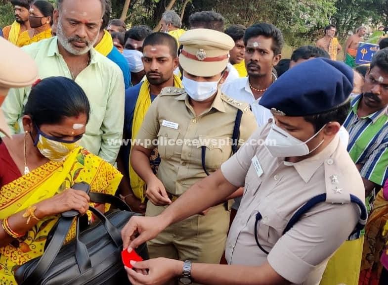 திருச்சி: திருச்சி மாவட்டம், 15.02.2022 இன்று திருச்சி மாவட்ட காவல் கண்காணிப்பாளர் திரு.சுஜித் குமார் இ.கா.ப அவர்கள் திண்டுக்கல் to திருச்சி தேசிய நெடுஞ்சாலையில் பாதை யாத்திரை செல்லும் பக்தர்களின் துணிப்பைகளில் ( Reflect sticker ) ஐ ஒட்டி, விபத்து ஏற்படாமல் தவிர்க்க நாம் செய்ய வேண்டியது என்ன என்பது குறித்தும், சாலைகளில் நடக்கும் போது விதிமுறைகளை பின்பற்றுவதின் முக்கியத்துவம் குறித்தும் விழிப்புணர்வு ஏற்படுத்தினார்.