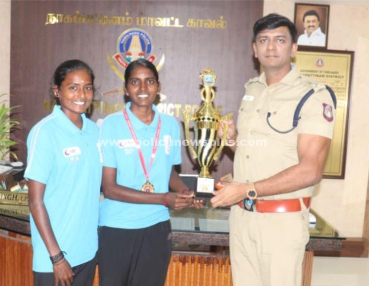 பாண்டிச்சேரி மாநிலத்தில் நடைபெற்ற பீச் வாலிபால் போட்டியில் கலந்து கொண்டு தங்கம் பதக்கம் வென்ற பெண் காவலர் மற்றும் மேலும் ஒரு விளையாட்டு பெண் வீரரை நாகை மாவட்ட காவல் கண்காணிப்பாளர் அவர்கள், நேரில் அழைத்து பாராட்டினார். V. சசிகலா (25). த/பெ வீரபத்திரன், காரைக்கால் இவர் தமிழ்நாடு காவல்துறையில் 2023 ஆண்டில் பணிக்குச் சேர்ந்து தற்போது திருச்சி நாவல்பட்டு காவலர் பயிற்சிப் பள்ளியில்,பயிற்சி காவலராக உள்ளார். இவர் சிறு வயதிலிருந்து பீச் வாலிபால் போட்டியில் மிகவும் ஆர்வம் கொண்டவராக இருந்த நிலையில் இந்திய அணிக்காக பல போட்டிகளில் கலந்து கொண்டு வெற்றி பெற்றுள்ளார்.