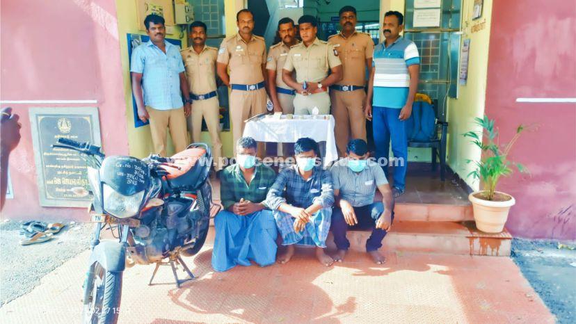 இந்நிலையில், குற்றச்சம்பவங்களில் ஈடுபட்ட செபஸ்டியான் மகன் சார்லஸ் என்ற சேசு அருள் (36). திருப்புவனம் அகரம் சிலைமான் பகுதியை சேர்ந்த வீரணன் என்பவரின் மகன் கார்த்தி (எ) கார்த்திகேயன் (36). நாமக்கல் மாவட்டம் ரெட்டிரோடு பகுதியை சேர்ந்த பாலசுப்பிரமணி என்பவர் மகன் மாதேஸ்வரன் (37). ஆகிய 3 பேரை தனிப்படையினர் பிடித்து விசாரித்ததில் கருங்குளத்தில் திருட்டு சம்பவத்தில் ஈடுபட்டதை ஒப்பு கொண்டுள்ளனர். அதனைத் தொடர்ந்து, வழக்கின் குற்றவாளிகளான மூவரிடமிருந்தும் திருடு போன களவு சொத்துக்களான 3.717 கிலோ அளவிலான வெள்ளி பொருட்கள் மற்றும் குற்றச்சம்பவத்திற்கு பயன்படுத்திய இருசக்கர வாகனம், ஆயுதம் போன்றவை கைப்பற்றப்பட்டு குற்றவாளிகள் மூவரும் கைது செய்யப்பட்டு நீதிமன்றக்காவலுக்கு அனுப்பப்பட்டனர். மேலும் இது போன்ற திருட்டு சம்பவங்களில் ஈடுபடுபவர்கள் மீது கடுமையான நடவடிக்கை எடுக்கப்படும் என சிவகங்கை மாவட்ட காவல் கண்காணிப்பாளர் ஆஷிஷ் ராவத், இ.கா.ப அவர்கள் எச்சரிக்கை விடுத்துள்ளார்.