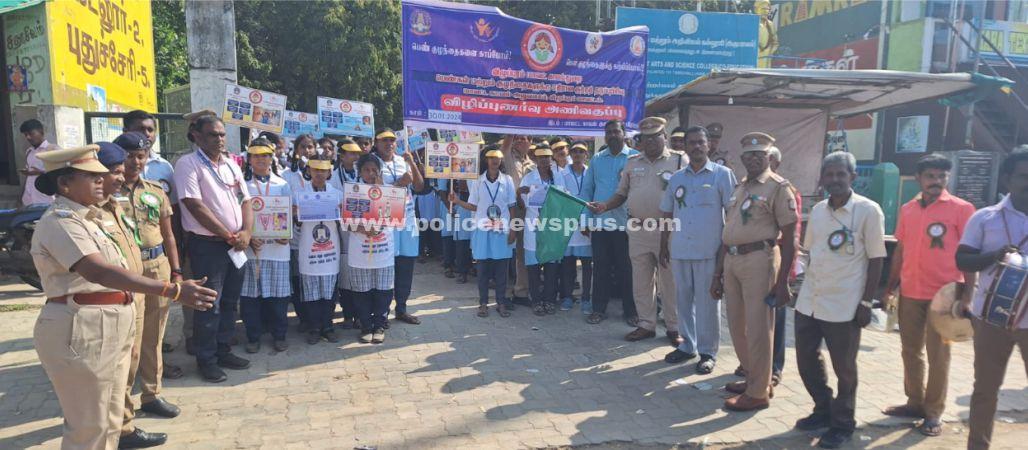 விழுப்புரம்: பெண் குழந்தைகளை காப்போம் பெண் குழந்தைகளுக்கு கற்பிப்போம்” என்ற திட்டத்தின் கீழ் பாலியல் குற்றங்கள் சம்பந்தமாகவும், குழந்தை திருமணத்தை தடுத்தல், குழந்தை தொழிலாளர் முறையை ஒழித்தல் மற்றும் போதை பொருட்களுக்கு எதிரான விழிப்புணர்வு மற்றும் உதவி எண்கள் CHILD HELP LINE 1098, WOMEN HELP LINE 181, SENIOR CITIZENS HELP LINE 14567, STUDENTS HELP LINE-14417, CYBER CRIME -1930. பற்றிய விழிப்புணர்வு நிகழ்ச்சி JP மஹாலில் நடைபெற்றது. பெண்கள் மற்றும் குழந்தைகளுக்கு எதிரான குற்ற தடுப்பு பிரிவு காவல் துணை கண்காணிப்பாளர் திரு.ராமச்சந்திரன் அவர்கள், காவல் ஆய்வாளர் திரு.கிருஷ்ணமூர்த்தி, உதவி ஆய்வாளர் திருமதி.கலைச்செல்வி, கோட்டகுப்பம் மகளிர் காவல் நிலைய உதவி ஆய்வாளர்கள் திருமதி.அறிவழகி, திருமதி.சுதா மற்றும் காவலர்கள் தலைமையில் திருச்சிற்றம்பலம் அரசு கலை மற்றும் அறிவியல் கல்லூரி முதல்வர் திரு. வில்லியம் மற்றும் குயிலாபாளையம் பள்ளி முதல்வர் திரு. குணசீலன் அவர்களின் உதவியுடன்திருச்சிற்றம்பலம் அரசு கலை மற்றும் அறிவியல் கல்லூரியைச் சேர்ந்த சுமார் 700 க்கும் மேற்பட்ட மாணவ, மாணவிகள் மற்றும் குயிலாப்பாளையம் மேல்நிலைப் பள்ளியைச் சேர்ந்த 150 மாணவிகள் கலந்து கொண்டு திருச்சிற்றம்பலம் கூட்ரோடு, காந்தி மேல்நிலைப்பள்ளி இருந்து புறப்பட்டு பாண்டி ரோடு, மயிலம் ரோடு வழியாக JP மஹால் வரை விழிப்புணர்வு அணிவகுப்பு பேரணி மற்றும் விழிப்புணர்வு கூட்டம் JP மஹாலில் நடைபெற்றது.