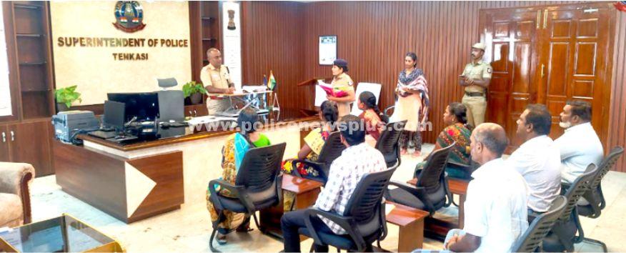 தென்காசி: தென்காசி மாவட்ட காவல் கண்காணிப்பாளர் திரு.S.அரவிந்த் அவர்களின் தலைமையில் பொதுமக்களுக்கான சிறப்பு குறை தீர்ப்பு கூட்டம் மாவட்ட காவல் அலுவலகத்தில் நடைபெற்றது. இக்கூட்டத்தில் பொதுமக்களிடம் புகார் மனுக்களை பெற்று அவர்களின் குறைகளை கேட்டறிந்து தீர்வு வழங்கப்பட்டது. மேலும் பொதுமக்களின் புகார்களை விரைந்து விசாரணை செய்திட சம்மந்தப்பட்ட அதிகாரிகளுக்கு அறிவுறுத்தப்பட்டது.