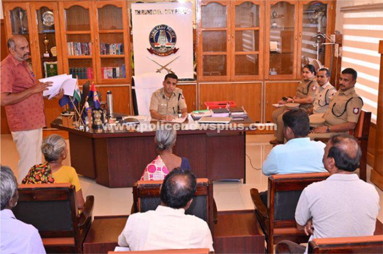 திருநெல்வேலி: தமிழக காவல்துறை தலைமை இயக்குனர் உத்தரவுப்படி பொதுமக்கள் குறைதீர்க்கும் கூட்டம் (29.01.2025) அன்று திருநெல்வேலி மாநகர காவல் ஆணையர் அலுவலகத்தில் நடைபெற்றது. இம்முகாமில் 11 பேர் கலந்து கொண்டு காவல் ஆணையர் சந்தோஷ் ஹாதிமணி இ.கா.ப.,விடம் புகார் மனுக்களை அளித்தார்கள். புகார் மனுக்கள் மீது சரியான நடவடிக்கை மேற்கொண்டு உரிய தீர்வு கிடைக்க வழிவகை செய்யப்படும் என காவல் ஆணையர் உறுதி கூறினார். இக்கூட்டத்தில் காவல் துணை ஆணையர்கள் V.கீதா, (மேற்கு) V.வினோத் சாந்தாராம், (கிழக்கு) S.விஜயகுமார், (தலைமையிடம்) ஆகியோர் கலந்து கொண்டனர்.