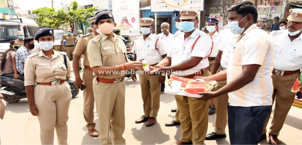 திருவண்ணாமலை: கோடை வெயிலின் தாக்கத்திலிருந்து போக்குவரத்து காவல்துறையினர் தற்காத்து கொள்ளும் வகையில் மோர், லெமன் ஜூஸ், தர்ப்பூசணி, உள்ளிட்ட பொருட்களை வழங்கும் நிகழ்வை திருவண்ணாமலை மாவட்ட காவல் கண்காணிப்பாளர் திரு.அ.பவன்குமார்,இ.கா.ப., அவர்கள் தொடங்கி வைத்தார். திருவண்ணாமலை நகர உதவி காவல் கண்காணிப்பாளர் செல்வி.டி.வி.கிரண்ஸ்ருதி,இ.கா.ப., அவர்கள் உடன் இருந்தார்.