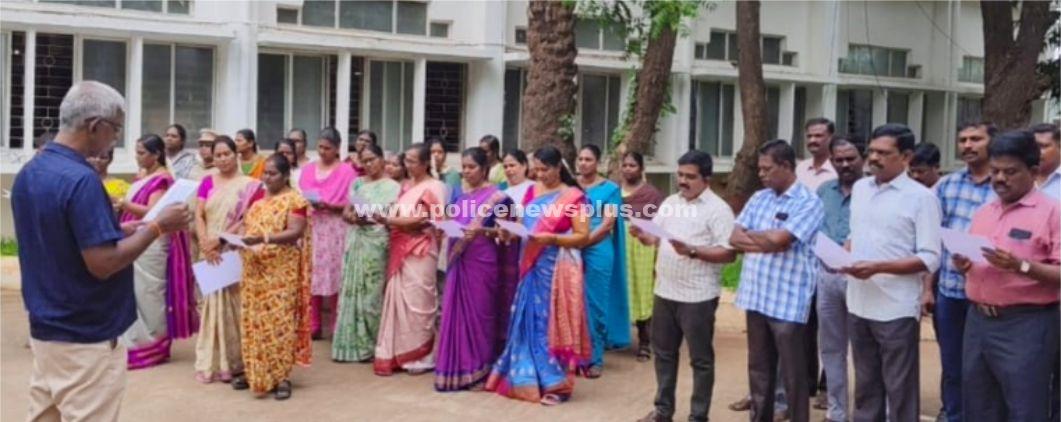 தூத்துக்குடி: போதையில்லா தமிழ்நாடு” என்பதை உருவாக்கும் பொருட்டு (11.08.2025) மாநிலம் முழுவதும் “வெகுஜன போதைப்பொருள் எதிர்ப்பு உறுதிமொழி நாள்” (Mass Anti-drug Pledge Day) அனுசரிக்கப்படுவதை முன்னிட்டு தூத்துக்குடி மாவட்ட காவல்துறை அலுவலகத்தில் போதை பழக்கத்திற்கு எதிரான உறுதிமொழி தூத்துக்குடி மாவட்ட கண்காணிப்பாளர் திரு. ஆல்பர்ட் ஜான் இ.கா.ப அவர்கள் உத்தரவின்படி மாவட்ட காவல் அமைச்சுப் பணி நிர்வாக அதிகாரி திரு. ராமசுப்பிரமணிய பெருமாள் அவர்கள் முன்னிலையில் காவல்துறையினர் மற்றும் காவல்துறை அமைச்சுப்பணியாளர்கள் ஆகியோரால் கீழ்கண்டவாறு உறுதிமொழி எடுக்கப்பட்டது.