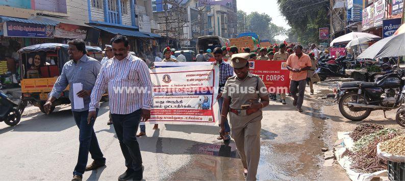 போதை பொருளை ஒழிக்கவும், சாலை பாதுகாப்பை உறுதி செய்ய வலியுறுத்தி கோஷங்களை எழுப்பியவாறு சுமார் 500க்கும் மேற்பட்ட மாணவர்கள் விழிப்புணர்வு பேரணி நடத்தினர்.