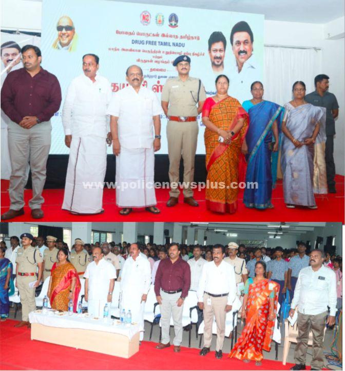 செங்கல்பட்டு : செங்கல்பட்டு மாவட்டம் போதைப் பொருள் விழிப்புணர்வு உறுதிமொழி நிகழ்ச்சி தமிழ்நாடு துணை முதல்வர் உதயநிதி ஸ்டாலின் அவர்கள் தலைமையில் காணொளி காட்சி மூலமாக நடைபெற்ற உறுதி ஏற்பு நிகழ்ச்சியை தொடங்கி வைத்தார். இதனை தொடர்ந்து செங்கல்பட்டு பகுதியில் உள்ள வித்யாசாகர் மகளிர் கல்லூரியில் செங்கல்பட்டு மாவட்ட ஆட்சியர் சினேகா. சிறு குறு நடுத்தர தொழில் நிறுவன துறை அமைச்சர் தா மோ அன்பரசன் செங்கல்பட்டு சட்டமன்ற உறுப்பினர் வரலட்சுமி மதுசூதனன் பல்லாவரம் சட்டமன்ற உறுப்பினர் கருணாநிதி செங்கல்பட்டு மாவட்ட காவல் கண்காணிப்பாளர் சாய்பிரணித் மதுவிலக்கு துணை கண்காணிப்பாளர் வேல்முருகன் செங்கல்பட்டு மாவட்ட துணை காவல் கண்காணிப்பாளர் புகழேந்தி கணேஷ் .கலால் ஆணையர் ராஜன் பாபு மற்றும் கல்லூரி மாணவிகள் அனைவரும் துணை முதலமைச்சர் உதயநிதி ஸ்டாலின் காணொளி காட்சி மூலமாக நடைபெற்ற போதை பொருட்களுக்கு எதிராக விழிப்புணர்வு உறுதிமொழியை ஏற்றுக் கொண்டனர்.