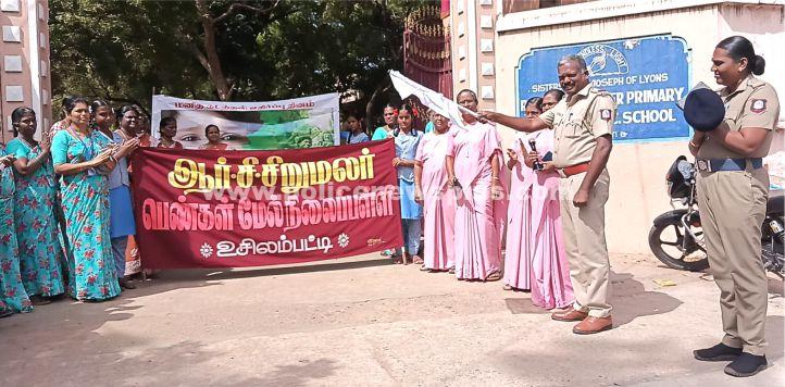 இந்த பேரணியை, பள்ளித் தலைமை ஆசிரியர் மெர்சி முன்னிலையில் உசிலம்பட்டி நகர் காவல் நிலைய சார்பு ஆய்வாளர் சரவணக்குமார் தலைமையில் கொடியசைத்து துவக்கி வைத்தனர். இந்த பேரணி, ஆர்.சி. பெண்கள் மேல்நிலைப் பள்ளியில் துவங்கி மதுரை சாலை, தேவர்சிலை, தேனி சாலை என உசிலம்பட்டியின் முக்கிய சாலைகள் வழியாக ஊர்வலமாக சென்று சுமார் 500 க்கும் மேற்பட்ட பள்ளி மாணவிகள் மனித கடத்தல்கள், சமூக பாதுகாப்பு, சிசு கொலைகள் மற்றும் போதை பொருள் ஒழிப்பு குறித்து கையில் பதாகைகளை ஏந்தி பொதுமக்களுக்கு விழிப்புணர்வை ஏற்படுத்தி பள்ளியில் நிறைவு செய்தனர். இதில் ,பள்ளி ஆசிரியர்கள் பலர் கலந்து கொண்டனர்.