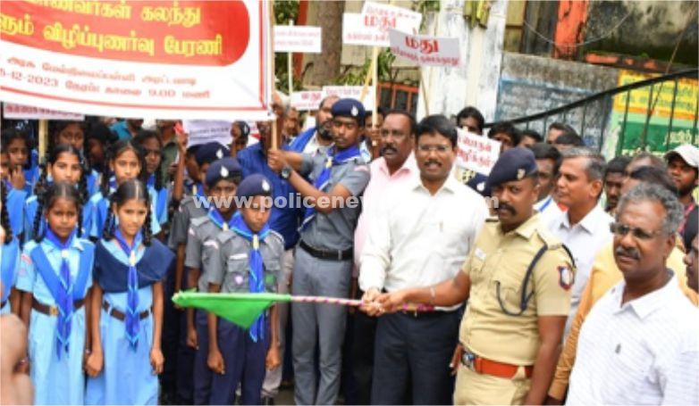 திருவண்ணாமலை : இன்று (05.12.2023) திருவண்ணாமலை மாவட்டம் செங்கம் காவல்நிலைய எல்லைக்குட்பட்ட அரட்டவாடி அரசினர் மேல்நிலைப் பள்ளயில், மதுவிலக்கு மற்றும் ஆயத்தீர்வைத் துறை சார்பாக நடத்தப்பட்ட பேரணியை, மாவட்ட ஆட்சித் தலைவர் திரு.பா.முருகேஷ், இ.ஆ.ப., அவர்கள் மற்றும் மாவட்ட காவல் கண்காணிப்பாளர் மரு.கி.கார்த்திகேயன், இ.கா.ப., அவர்கள் கொடியாசைத்து துவக்கி வைத்தனர். இதில் மது அருந்துதல், மது அருந்திவிட்டு வாகனம் ஓட்டுதல் மற்றும் போதை பொருள் பயன்பாட்டுக்கு எதிரான விழிப்புணர்வை பொதுமக்கள் மற்றும் மாணவ, மாணவிகளுக்கிடையே ஏற்படுத்தப்பட்டது. மேலும் அப்பள்ளியில் முதல் மதிபெண் பெற்ற மாணவ, மாணவிகளுக்கு பாராட்டு சான்றிதழ்கள் மற்றும் கேடயம் வழங்கப்பட்டது.