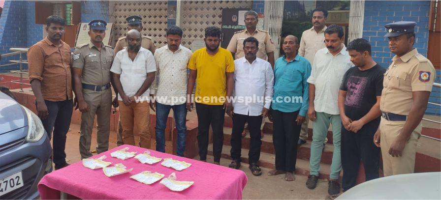 சிவகங்கை: சிவகங்கை மாவட்டம் காரைக்குடி 100 அடி ரோட்டில் உள்ள தனியார் நிதி நிறுவனத்தில் போலி நகைகளை அடகு வைக்க வந்த குற்றவாளிகள் 7 பேர் நிதி நிறுவன ஊழியர்களின் ரகசிய தகவலின் பெயரில் சிவகங்கை மாவட்ட காவல் கண்காணிப்பாளர் டோங்கரே பிரவீன் உமேஷ்யின் உத்தரவின் பேரில் காரைக்குடி உட்கோட்ட துணை காவல் கண்காணிப்பாளர் R. பிரகாஷ் மேற்பார்வையில் காரைக்குடி வடக்கு காவல் நிலைய குற்றப்பிரிவு காவல் ஆய்வாளர் இளவரசு தலைமையில் வடக்கு காவல் நிலைய குற்றப்பிரிவு சார்பு ஆய்வாளர் ராமச்சந்திரன் முன்னிலையில் தனிப்படை விரைந்து சென்று குற்றவாளிகளை கைது செய்ததுடன் அவர்கள் பயன்படுத்திய இரண்டு சொகுசு காரையும் கைப்பற்றி விசாரணை மேற்கொண்டு வருகின்றனர்.
