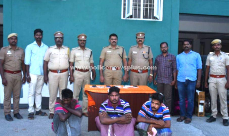 அதன் பேரில், காவல் துறையினர் வழக்குப் பதிந்து மேற்கொண்ட விசாரணையில், திருவள்ளூர் மாவட்டம், செங்குன்றம் பகுதியைச் சேர்ந்த சத்யா மகன்கள் வல்லராஜ்(25), கிருஷ்ணன்(எ) தர்மராஜ்(24), சேலம் மாவட்டம், சீலநாயக்கன்பட்டியைச் சேர்ந்த மாடசாமி மகன் சனியன்(எ)குமார் (39) ஆகிய 3 பேரும், சேலம் மாவட்டம், எருமபாளையம் பேருந்து நிலையத்துக்கு வரும் பொதுமக்களிடம், கைரேகை பார்ப்பதாகக் கூறி, தங்களுக்கு தோஷம், செய்வினை உள்ளதாக தெரிவித்து, அவர்களது கைப்பேசி எண்களைப் பெற்று, பின்னர் அவர்களது கைப்பேசி எண்களில் தொடர்புக் கொண்டு, தாங்கள் பரிகாரம் செய்யவில்லை என்றால் தங்கள் வீட்டில் அசம்பாவிதங்கள் நடைபெறும் என அச்சுறுத்தி பணம் பறித்து வந்துள்ளது தெரியவந்தது. இதையடுத்து காவல் துறையினர், 3 பேரையும் கைது செய்தனர். மேலும் அவர்களிடமிருந்து ரூ.6,30,000 மதிப்புள்ள வீட்டு உபயோகப் பொருள்கள் மற்றும் கார், இரண்டு இரு சக்கர வாகனங்கள், 10 பவுன் நகைகள் உள்ளிட்டவைகளை காவல் துறையினர் பறிமுதல் செய்தனர்.
