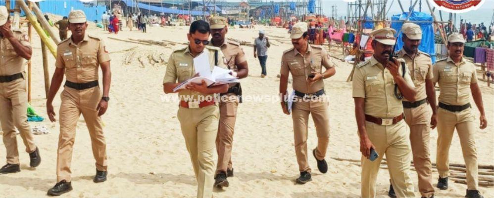 மேலும் பக்தர்கள் மற்றும் பொதுமக்கள் கடற்கரையில் குளிக்கும்போது ஆபத்து நேரங்களில் அவசர உதவி தேவைப்படுபவர்களுக்காக தூத்துக்குடி மாவட்டம் திருச்செந்தூர் கடலோர பாதுகாப்பு குழுமம் காவல் நிலைய சார்பு ஆய்வாளர் தலைமையில் 10 கடலோர பாதுகாப்பு குழும போலீசார் படகுடன் கடற்கரையோரமாக பாதுகாப்பில் ஈடுபட்டு வருகின்றனர். மேற்படி போலீசாரின் பாதுகாப்பு பணிகளை மாவட்ட காவல் கண்காணிப்பாளர் அவர்கள் ஆய்வு செய்து ஆபத்து நேரங்களில் உடனடியாக செயல்பட்டு பொதுமக்கள் மற்றும் பக்தர்களுக்கு உதவ வேண்டும் என்று அறிவுரைகள் வழங்கினார்.