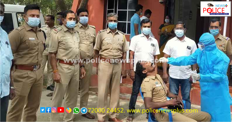 மருத்துவ அலுவலர் டாக்டர் திரு.செந்தில்குமார் தலைமையில் மருத்துவக் குழுவினர் துணை போலீஸ் சூப்பிரண்டு (பயிற்சி) திரு.ரூபன் குமார், டவுன் போலீஸ் இன்ஸ்பெக்டர் திரு.கோகுல்ராஜன், சப்-இன்ஸ்பெக்டர்கள் திரு.தருமன், திரு.ரகு, திரு.கிருஷ்ணமூர்த்தி மற்றும் சிறப்பு சப்-இன்ஸ்பெக்டர் திரு.பழனிவேல் உள்பட அனைத்துப் போலீசாருக்கும் கொரோனா பரிசோதனை மேற்கொள்ளப்பட்டது.