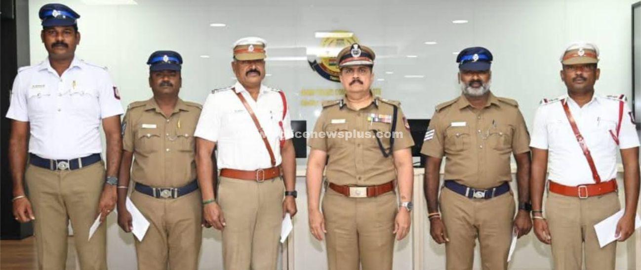 ஆவடி காவல் ஆணையாளர் திரு.கி.சங்கர், இ.கா.ப., அவர்கள் T7 டேங்க் பேக்டரி காவல் நிலைய கொள்ளை வழக்கில் மேற்குவங்க மாநில கொள்ளையர்களை கைது செய்து 40 சவரன் தங்க நகைகள் மற்றும் ரூ.2,39,000/- பறிமுதல் செய்த காவல் ஆய்வாளர் தலைமையிலான போலீசார், செம்மரம் கடத்தி வந்த குற்றவாளிகளை கைது செய்து செம்மர கட்டைகளை பறிமுதல் செய்த போக்குவரத்து பிரிவு காவல் ஆய்வாளர் தலைமையிலான போலீசார் மற்றும் இணையவழி குற்ற வழக்கில் குற்றவாளிக்கு தண்டனை பெற்று கொடுத்த ஆவடி இணைய வழி குற்றப்பிரிவு காவல் ஆய்வாளர் தலைமையிலான போலீசார் ஆகியோரை நேரில் அழைத்து பாராட்டுகளை தெரிவித்து வெகுமதிகளை வழங்கி சிறப்பித்தார்கள்.