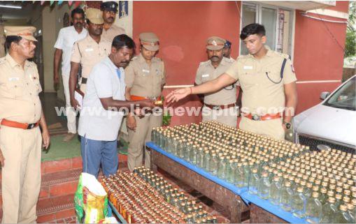 நாகப்பட்டினம் : நாகப்பட்டினம் மாவட்ட காவல் கண்காணிப்பாளர் திரு. ஹர்ஷ் சிங், இ.கா.ப, அவர்களின், உத்தரவின் பேரில் கள்ளச்சாராய விற்பனை மற்றும் கடத்தல் ஆகியவற்றினை கட்டுப்படுத்த எடுக்கப்பட்டு வரும் நடவடிக்கையின் ஒரு பகுதியாக (28.10.2023) உதவி ஆய்வாளர் G.பாலமுருகன் அவர்களின், தலைமையில் அமைக்கப்பட்ட தனிப்படை காவல் துறையினர் நடத்திய அதிரடி சோதனையில் நாகை நகர காவல் நிலைய சரகத்திற்கு உட்பட்ட வடக்கு பொய்கை நல்லூர் பகுதியில் சட்டத்திற்கு புறம்பாக வெளிமாநில மது பாட்டில்கள் கடத்தல் குற்றத்தில் ஈடுபட்ட 1).கார்த்திகேசன் (25). த/பெ முருகையன், (49). சங்கரன் தோப்பு, விழிதியூர், நாகப்பட்டினம். 2) கருணாகரன் (28). த/பெ கலியபெருமாள், (15) சங்கரன் தோப்பு விழிதியூர், நாகப்பட்டினம் ஆகிய இரண்டு நபர்களை கைது செய்து, அவரிடமிருந்து 90ML அளவுள்ள 800 பாண்டி மது பாட்டில்கள் மற்றும் 180 ML அளவுள்ள 1000 பாண்டி மது பாட்டில்களை பறிமுதல் செய்து கடத்தலுக்கு பயன்படுத்தப்பட்ட ஒரு நான்கு சக்கர வாகனம் (FORD FIESTA) மற்றும் ஒரு இரு சக்கர வாகனம் ( YAMAHA) பறிமுதல் செய்யப்பட்டது. மேலும் இக்குற்ற சம்பவத்தில் தொடர்புடைய இரண்டு நபர்களை காவல்துறையினர் தேடி வருகின்றனர். இது போன்ற கள்ளச்சாராயம் விற்பனை மற்றும் கடத்தல் ஆகிய குற்றச்செயல்களில் ஈடுபட்டால் குண்டர் சட்டத்தின் கீழ் கைது செய்யப்படுவார்கள்.