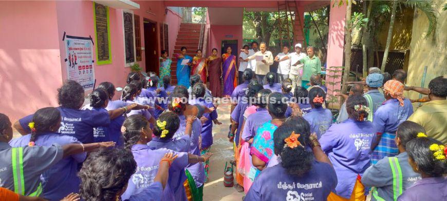 திருவள்ளூர் : திருவள்ளூர் மாவட்டம் மீஞ்சூர் பேரூராட்சியில் தேசத்தந்தை மகாத்மா காந்தியின் நினைவு தினத்தை முன்னிட்டு தீண்டாமை உறுதிமொழி ஏற்கப்பட்டது. பேரூராட்சி தலைவர் ருக்மணி மோகன்ராஜ் தலைமையில் துணைத் தலைவர் ப. அலெக்சாண்டர் செயல் அலுவலர் மகேஸ்வரி ஆகியோர் முன்னிலையில் பேரூராட்சி ஊழியர்கள், தூய்மை பணியாளர்கள் தீண்டாமை உறுதிமொழி ஏற்றுக் கொண்டனர். உடன் பேரூராட்சி வார்டு கவுன்சிலர்கள் கவிதா சங்கர், சங்கீதா சேகர், ஜெயலட்சுமி தன்ராஜ், பரிமளா அருண் குமார், ராஜன், ரஜினி, குமாரி புகழேந்தி, மற்றும் பேரூராட்சி அலுவலர்கள் உள்ளிட்டர் கலந்து கொண்டனர்.