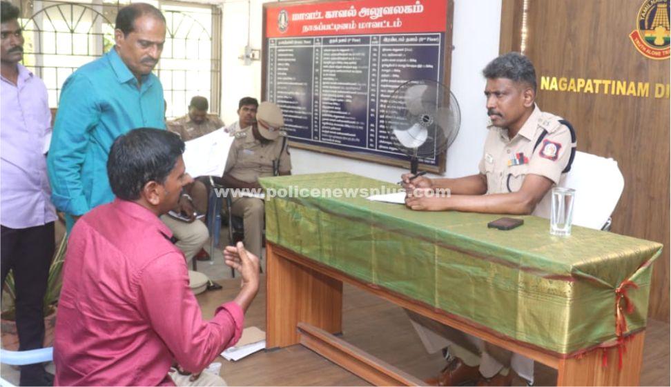 நாகப்பட்டினம்: நாகப்பட்டினம் மாவட்ட காவல் அலுவலகத்தில் நாகப்பட்டினம் மாவட்ட காவல் கண்காணிப்பாளர் திரு சு. செல்வக்குமார் இ. கா. ப அவர்கள் பொதுமக்களை சந்தித்து அவர்ளின் குறைகளை கேட்டறிந்து 18 மனுக்களை பெற்றார்கள் பெறப்பட்ட மனுக்களுக்கு விரைவில் நடவடிக்கைகள் எடுக்கப்படும் என்றும் உறுதியளித்தார்கள். ஒவ்வொரு வாரம் புதன்கிழமை தோறும் மக்கள் குறை தீர்க்கும் மனு நாள் நாகப்பட்டினம் மாவட்ட காவல் அலுவலகத்தில் நடைபெறும் என்று தெரிவித்துள்ளார்கள். இந்நிகழ்ச்சியில் காவல்துறையினர் மற்றும் பொதுமக்கள் கலந்து கொண்டனர்.