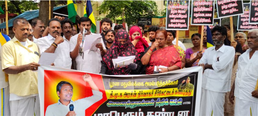 மதுரை: மதுரையில் தமிழரசி கண்டித்து அனைத்து மக்கள் நீதிக் கட்சி இயக்கம் ஆர்ப்பாட்டம் நடத்தியது. தமிழகத்தில் அரசு மதுபான கடைகளை மூட வலியுறுத்தி, அனைத்து மக்கள் நீதிக் கட்சியினர் மாவட்டத் தலைவர் எ. சுரேஷ் தலைமையில் ஆர்ப்பாட்டம் நடத்தினர். மாநில நிர்வாகி செல்வம், கட்சியின் நிறுவனத் தலைவர் யோசன், ஆர்ப்பாட்டை துவங்கி வைத்து, சிறப்புரை ஆற்றினார் . பாஜக மாவட்ட நிர்வாகி மகா. சுசீந்திரன், தென்னிந்திய பார்வர்ட் பிளாக் நிர்வாகி திருமாறன்ஜி, அனைத்து மக்கள் கட்சி