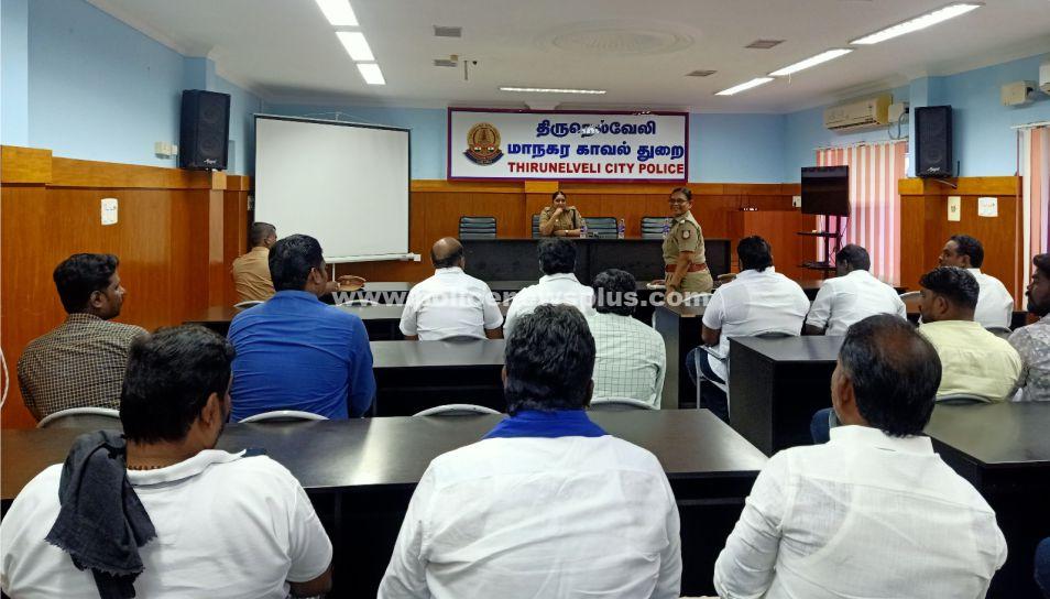 திருநெல்வேலி : திருநெல்வேலி மாநகர காவல் ஆணையர் ரூபேஷ் குமார் மீனா, இ.கா.ப., உத்தரவின் படி காவல் துணை ஆணையர் V.கீதா, (மேற்கு) தலைமையில், மாநகர காவல் ஆணையர் அலுவலகத்தில் (28-11-2024) அன்று மாநகர பகுதிகளில் இயங்கி வரும் மதுபானக் கூட நிர்வாகிகளுடன் ஆலோசனை கூட்டம் நடைபெற்றது. இக்கூட்டத்தில் அரசு விதித்த கட்டுப்பாடுகளை சரியாக கடைபிடிக்கவும், டாஸ்மாக் மதுபானங்களை மதுபானக்கூடங்களில் விற்பனை செய்யக்கூடாது, உரிமம் இல்லாமல் நடத்தக் கூடாது, உரிமங்களை சரியான காலங்களில் புதுப்பிக்க வேண்டும் சரியான நேரத்திற்கு திறந்து, அடைக்க வேண்டும் என்பது உட்பட ஆலோசனை வழங்கப்பட்டது.