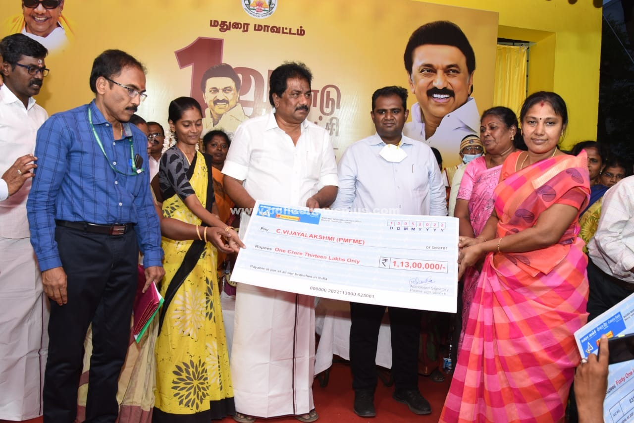 விழாவில், 897 பயனாளிகளுக்கு 8 கோடி மதிப்பிலான, நலத்திட்ட உதவிகள் வழங்கப்பட்டது. பின்னர், செய்தியாளர்களை சந்தித்த அமைச்சர் திரு. பி.மூர்த்தி கூறுகையில் “மதுரை மாவட்டத்தில் ஒராண்டில், 1 இலட்சம் பேருக்கு 300 கோடி அளவில் நலத்திட்ட உதவிகள் வழங்கப்பட்டு உள்ளது” தமிழகம் முழுதும், நலத்திட்டங்கள் செயலடுத்தப்பட்டு வருகிறது. அதி.மு.க அரசு விட்டு சென்ற 6 இலட்சம், கோடியை சமாளித்து நலத்திட்டங்களை முதல்வர், செயல்படுத்தி வருகிறார்.
