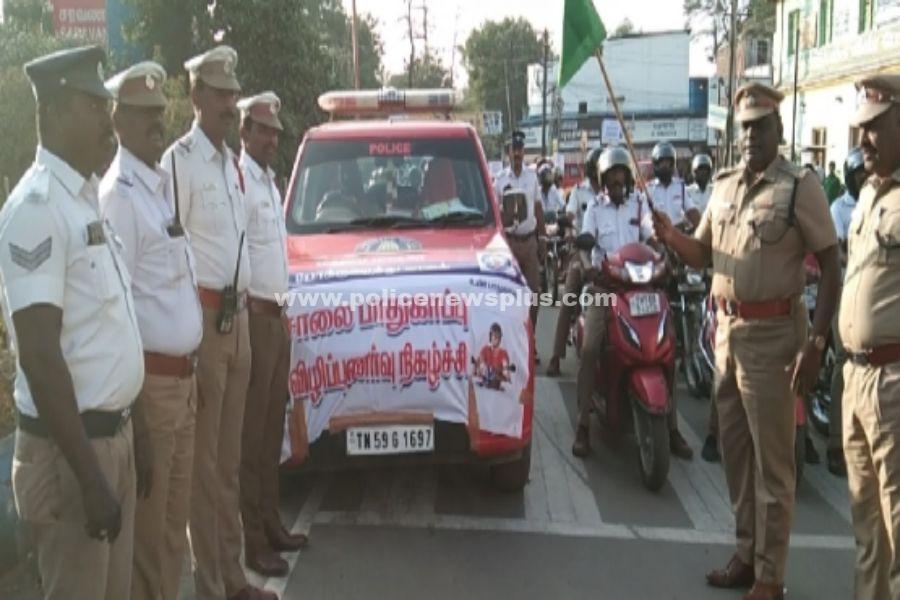 மதுரை : சாலை பாதுகாப்பு வார விழாவை முன்னிட்டு, தலைக்கவசம் அணிந்து இரு சக்கர வாகன நடைபெற்றது. சாலை பாதுகாப்பு வார விழாவை முன்னிட்டு, மதுரை மாநகர போக்குவரத்து காவல்துறை சார்பாக, மதுரை பெரியார் பேருந்து நிலையத்திலிருந்து, மதுரை விளாச்சேரி சௌராஷ்டிரா கல்லூரி வரையில் இருசக்கர வாகனத்தில் தலை கவசம் அணிந்து வாகனப் பேரணி நடைபெற்றது. இதில், சாலை பாதுகாப்பு விழிப்புணர்வு குறித்து துண்டு பிரசுரங்கள் வழங்கப்பட்டு பேரணியானது நடைபெற்றது. இப்பேரணையை, மதுரை மாநகர போக்குவரத்து துணை ஆணையாளர் ஆறுமுகசாமி தொடங்கி வைத்தார். மதுரை நகர் போக்குவரத்து உதவி ஆணையாளர் செல்வின், தெற்கு போக்குவரத்து ஆய்வாளர் நந்தகுமார், திருப்பரங்குன்றம் போக்குவரத்து ஆய்வாளர் பூர்ணகிருஷ்ணன், மற்றும் சார்பு ஆய்வாளர்கள் காவல் துறையினர் ஆகியோர் கலந்து கொண்டனர். மேலும், இந்த பேரணியில் மன்னர் கல்லூரி மாணவர்கள், மற்றும் என் .எஸ். எஸ். மாணவர்கள் ஆகியோர் பேரணியாக சென்றனர் .