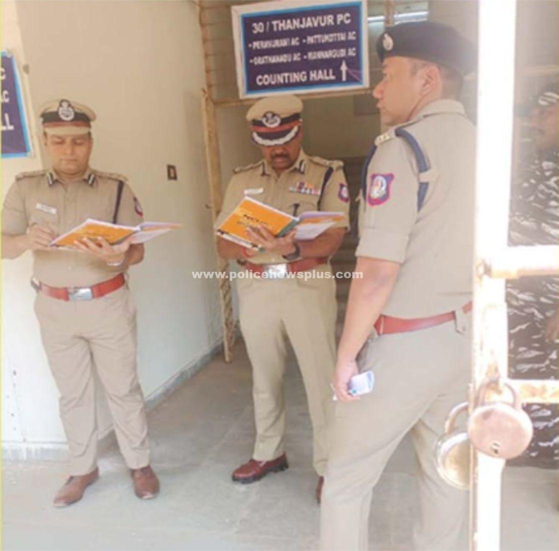 தஞ்சாவூர்: (25.04.2024) தஞ்சாவூர் மாவட்டத்தில் நடைப்பெற்று முடிந்த நாடாளுமன்ற தேர்தல் வாக்கு எண்ணிக்கை மையம் அமைந்துள்ள குந்தவை நாச்சியார் கலைக் கல்லூரியின் மூன்று அடுக்கு பாதுகாப்பை மத்திய மண்டல காவல்துறை தலைவர் திரு.கார்த்திகேயன் இ.கா.ப அவர்கள் ஆய்வு செய்தார்.