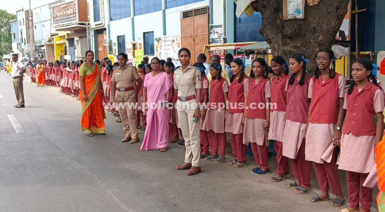 சபை இல்ல தலைவி அருட் சகோதரி சூசையம்மாள் வரவேற்று பேசினார். இவ்விழாவில், காவல் சார்பு ஆய்வாளர் லீலாவதி மற்றும் சிறப்பு ஆய்வாளர் சாந்தி ஆகியோர்கள் தலைமை ஏற்று மனித கடத்தல் குறித்தும், பெண்கள், பெண் குழந்தைகள், குழந்தை திருமணம் உள்ளிட்டவைகள் குறித்து சிறப்புரையாற்றினார்கள். இதில்,பள்ளித் தலைமை ஆசிரியர் அருள்லூயிஸ்மெர்சி,உதவி த்தலைமை ஆசிரியர்விமலா மற்றும் தொடக்கப்பள்ளி தலைமை ஆசிரியை சகாயம் உள்ளிட்ட ஆசிரியர்கள் மாணவிகள் கலந்து கொண்டனர். அதனைத் தொடர்ந்து, மனித சங்கிலி பேரணி நடைபெற்றது. இந்த பேரணியை, காவல் சார்பு ஆய்வாளர் லீலாவதி தொடங்கி வைத்தார்.பள்ளியில் இருந்து மனித சங்கிலி பேரணியானது, தொடங்கி பேருந்து நிலையம் வரை சுமார் ஒரு கிலோ மீட்டர் பொது மக்களிடையே மனித கடத்தல் எதிர்ப்பு குறித்து விழிப்புணர்வு ஏற்படுத்தினர்.