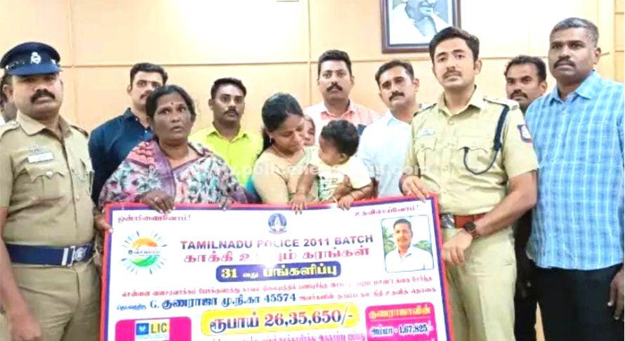 தமிழ்நாடு காவல்துறையில் 2011 ஆம் ஆண்டு காவல்துறை பணியில் சேர்ந்த காவலர்கள் 5,500 பேர் காக்கி உதவும் கரங்கள் எனும் டெலிகிராம் குழு இணைந்துள்ளனர். இக்குழு உறுப்பினர்களில் ஒருவர் முதல்நிலை காவலர் குணராஜா சென்னை வளசரவாக்கம் போக்குவரத்து காவலராக பணியாற்றிய இவர் சமீபத்தில் இறந்தார். இவரது குடும்பத்திற்கு உதவ காக்கி உதவும் கரங்கள் மூலம் ரூ.26,35,650 வசூலிக்கப்பட்டது. இத்தொகையில் 5.23 லட்சத்தை குணராஜா மகள் யாசினி குணனிகா பெயரில் எல்ஐசியில் சேமிப்பு செய்த பத்திரம், எஞ்சிய தொகை ரூ.3,35,650 ஐ குணராஜாவின் மனைவி, தாயாருக்கு தலா ரூ. 1,67,825 க்கான காசோலையை ராமநாதபுரம் எஸ்பி சந்தீஷ், குண ராஜாவின் குடும்பத்தாரிடம் வழங்கினார்.