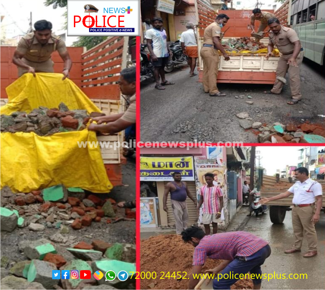 வேலூர்: வேலூர் மாவட்ட காவல் கண்காணிப்பாளர் திரு. செல்வகுமார் அவர்கள் வழிகாட்டுதலின்படி குடியாத்தம் போக்குவரத்து காவல்துறையினர் பொதுமக்கள் நலனுக்காக சாலை விபத்து ஏற்படுவதை தடுக்கும் வகையில் குடியாத்தம் நகரில் மழையால் சாலையில் சுமார் 15 இடங்களில் ஏற்பட்ட பள்ளங்களை மாவட்ட காவல் துறை சார்பாக சரி செய்தனர்.