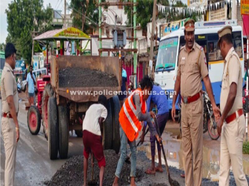 கடலூர் : கடலூர் மாவட்ட காவல் கண்காணிப்பாளர் திரு. S. சக்திகணேசன் IPS அவர்கள் வடகிழக்கு பருவ மழையினால் தடைபட்ட போக்குவரத்தை உள்ளாட்சி நிர்வாகத்துடன் இணைந்து சரி செய்ய நடவடிக்கை மேற்கொள்ள வேண்டும் என வழங்கிய அறிவுரையின்பேரில் சேத்தியாதோப்பு டவுன் பஞ்சாயத்து உட்பட்ட நகர பகுதியில் உள்ள சாலையில் மழையினால் சேதமடைந்து பள்ளங்கள் உள்ளதாக தகவல் கிடைத்தவுடன் சேத்தியாதோப்பு துணை காவல் கண்காணிப்பாளர் திரு. ரூபன்குமார் அவர்கள் உடனடியாக நேரில் சென்று பார்வையிட்டு உள்ளாட்சி நிர்வாக உதவியுடன் சாலைகள் சரி செய்யப்பட்டு போக்குவரத்துக்கு வழிவகை மேற்கொள்ளப்பட்டது.