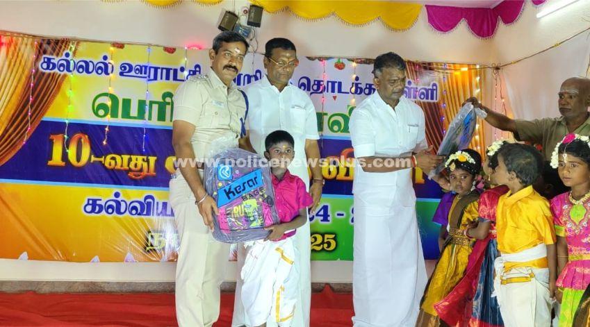 சிவகங்கை: சிவகங்கை மாவட்டம் திருப்பத்தூர் அருகே பெரிச்சி கோயில் கிராமத்தில் உள்ள கல்லல் ஊராட்சி ஒன்றிய தொடக்கப்பள்ளியில் 10வது ஆண்டு விழா பிரம்மாண்டமாக நடைபெற்றது. பள்ளியின் தலைமை ஆசிரியர் தலைமை வைத்தார். முன்னாள் ஊராட்சி மன்ற தலைவர் வைரமணி விழா ஏற்பாடுகளையும், மாணவர்களுக்கு பரிசுகளையும் வழங்கினார். இதில் மாணவ மாணவிகள் பல்வேறு கலை நிகழ்ச்சிகளில் கலந்து கொண்டு அசத்தினர். இந்த ஆண்டு விழாவிற்கு காவல் துணை கண்காணிப்பாளர் செல்வகுமார் சிறப்பு அழைப்பாளராக கலந்து கொண்டு விழிப்புணர்வு உரையாற்றினார். அப்போது அவர் பேசுகையில், இன்றைய அரசு பள்ளிகள் மிகுந்த வளர்ச்சி அடைந்துள்ளன.