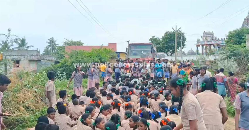 மாணவர்களுடன் இணைந்து பெற்றோர்களும் கிராமத்திற்கு வந்த 3அரசு பேருந்துகளை சிறை பிடித்து போராட்டத்தில் ஈடுபட்டுள்ளனர். மாணவர்களின் வாழ்க்கைக்கு அடித்தளமாக விளங்கும் பள்ளி கல்வித்துறையில் நிலவி வரும் ஆசிரியர் பற்றாக்குறையை உடனடியாக போக்கிட வேண்டும் எனவும், தமிழ்நாட்டின் கடைக்கோடி கிராமமாக அமைந்துள்ளதால் பணியமர்த்தப்பட்டும் வர மறுக்கும் ஆசிரியர்கள் மீது தமிழ்நாடு அரசு உரிய நடவடிக்கை எடுக்க வேண்டும் எனவும் பெற்றோர்கள் கோரிக்கை வைக்கின்றனர். தொடர்ந்து போராட்டத்தில் ஈடுபட்டுள்ள மாணவர்களிடம் காவல்துறை மற்றும் அதிகாரிகள் பேச்சுவார்த்தை நடத்தி வருகின்றனர். வகுப்புகளை புறக்கணித்து மாணவர்கள் சாலையில் அமர்ந்து அரசு பேருந்துகளை சிறை பிடித்து போராட்டத்தில் ஈடுபட்டு வருவதால் பரபரப்பு நிலவி வருகிறது.