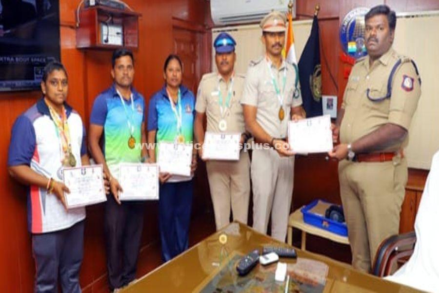 நாமக்கல் : தமிழ்நாடு காவல் துறை சார்பில் 62-வது மாநில அளவிலான காவல்துறையினருக்கான தடகள விளையாட்டு போட்டி திருச்சியில் கடந்த (03.03.2023) முதல் (05.03.2023) வரை நடைபெற்றது. இந்த போட்டியில் மேற்கு மண்டலம் காவல்துறை சார்பாக நாமக்கல் மாவட்டம் ஆயுதப்படை காவல் ஆய்வாளர் திரு.முரளிகுமார் அவர்கள் 400 மீட்டர் ஓட்டப்பந்தயத்தில் வெண்கல பதக்கமும், நாமகிரிப்பேட்டை காவல் நிலையத்தைச் சேர்ந்த பெ.த.கா. 761 திருமதி.அமுதா என்பவர் குண்டு எறிதல் போட்டியில் வெள்ளிப் பதக்கமும், எருமப்பட்டி காவல் நிலையத்தைச் சேர்ந்த த.கா.142 திரு.ரமேஷ் என்பவர் நீளம் தாண்டுதலில் தங்கப் பதக்கமும், இராசிபுரம் போக்குவரத்து பிரிவைச் சேர்ந்த பெ.த.கா. 1249 திருமதி.அருள்மொழி என்பவர் நீளம் தாண்டுதலில் தங்கப் பதக்கமும் மற்றும் 100 மீட்டர் ஓட்டப்பந்தயத்தில் வெள்ளிப் பதக்கமும் மற்றும் திருச்செங்கோடு நகர காவல் நிலையத்தைச் சேர்ந்த மு.நி.கா. 1481 திரு.ராதாகிருஷ்ணன் என்பவர் நீளம் தாண்டுதலில் வெண்கல பதக்கமும் வென்று நாமக்கல் மாவட்ட காவல்துறைக்கு பெருமை சேர்த்தனர். பதக்கங்கள் வென்ற காவல் ஆளிநர்கள் இன்று 15.03.2023-ம் தேதி நாமக்கல் மாவட்ட காவல் கண்காணிப்பாளர் திரு.ச.கலைச்செல்வன், இ.கா.ப. அவர்களை சந்தித்து வாழ்த்து பெற்றனர்.