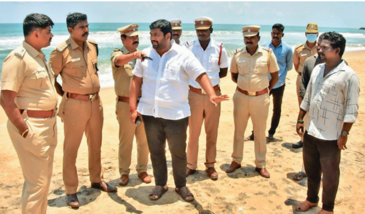 இந்த நிலையில் சிலைகள் கரைக்க உள்ள மாமல்லபுரம் புறவழிச்சாலையில், உள்ள கடற்கரை பகுதிக்கு நேற்று செங்கல்பட்டு மாவட்ட போலீஸ் சூப்பிரண்டு திரு.சுகுணாசிங், மாமல்லபுரம் துணை போலீஸ் சூப்பிரண்டுதிரு. ஜெகதீஸ்வரன், மாமல்லபுரம் போலீஸ் காவல் ஆய்வாளர் திரு.ருக்மாங்கதன் உள்ளிட்ட காவல்துறையினர் ,பார்வையிட்டு ஆய்வு செய்தனர். யாரையும் கடலில் குளிக்க அனுமதிக்க கூடாது என்று மாவட்ட போலீஸ் சூப்பிரண்டு சுகுணாசிங் போலீசாரிடம் அறிவுறுத்தினார். சுற்றுச்சூழலை பாதிக்கும் வகையிலான பிளாஸ்டர் ஆப் பாரிஸ் எனப்படும் வேதிப்பொருட்களால் தயாரிக்கப்பட்ட விநாயகர் சிலைகளை மாமல்லபுரம் கடலில் கரைக்க அங்கு பாதுகாப்பில் இருக்கும் போலீசார் அனுமதி வழங்ககூடாது. அப்படி மீறி கொண்டுவரப்படும் சிலைகளை பறிமுதல் செய்யவும் போலீசாருக்கு அவர் அறிவுறுத்தினார்.