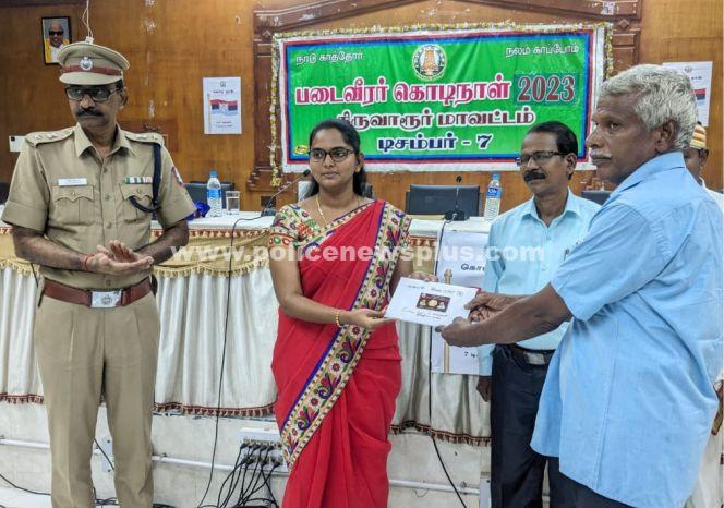 திருவாரூர் :கொடி நாள் என்பது இந்தியாவின் முப்படை வீரர்களின் அரும்பணிகளையும், தியாகத்தையும் போற்றும் நாளாகும். ஒவ்வொரு ஆண்டும் டிசம்பர் மாதத்தின் ஏழாம் நாளை படை வீரர் கொடி நாளாக இந்திய அரசும் இந்திய மாநில அரசுகளும் கடைப்பிடிக்கின்றன. இக்கொடி நாள் 1949ஆம் ஆண்டு டிசம்பர் ஏழாம் நாள் முதல் இந்தியா முழுமைக்கும் கொண்டாடப்பட்டு வருகிறது. தியாக உணர்வுடன் பணியில் ஈடுபடும் முப்படை வீரர்களின் குடும்ப நலன்களையும், முன்னாள் படைவீரர்களின் நலன்களையும் காக்கும் சமுதாயக் கடமையை நிறைவேற்றும் வகையில், கொடி விற்பனையின் மூலமும் நன்கொடைகள் மூலமூம் திரட்டப்படும் நிதியை படைவீரரின் குடும்பத்தினரின் நல்வாழ்வுக்காகவும், உடல் உறுப்புகளை இழந்த வீரர்களின் மறுவாழ்வுப் பணிகளுக்காகவும் பயன்படுத்தப்படுகிறது. அதன்படி (07.12.2023) திருவாரூர் மாவட்ட ஆட்சியர் அலுவலகத்தில், படைவீரர் கொடிநாள் வசூல் பணியினை மாவட்ட ஆட்சியர் *திருமதி.T.சாருஸ்ரீ இ.ஆ.ப* அவர்கள் துவக்கி வைத்தார்கள். அப்போது திருவாரூர் மாவட்ட காவல் கண்காணிப்பாளர் *திரு.S.ஜெயக்குமார், M.Sc., (Agri) அவர்கள்* உடனிருந்தார்கள்.