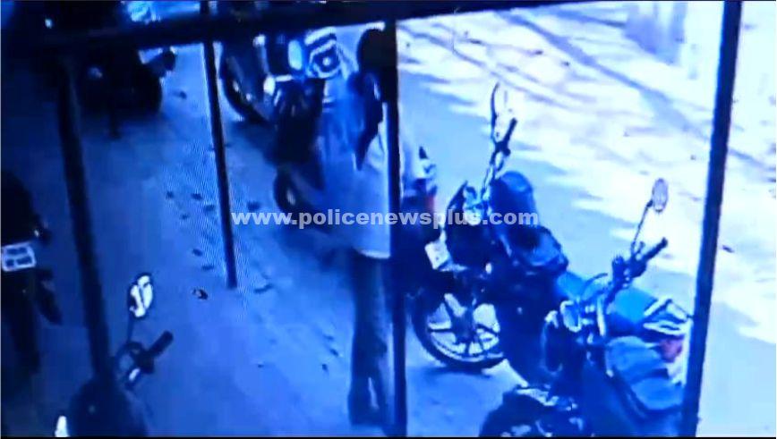 ஒருவர் சர்வ சாதாரணமாக இருசக்கர வாகனத்தை எடுத்துச் செல்வது பதிவாகி