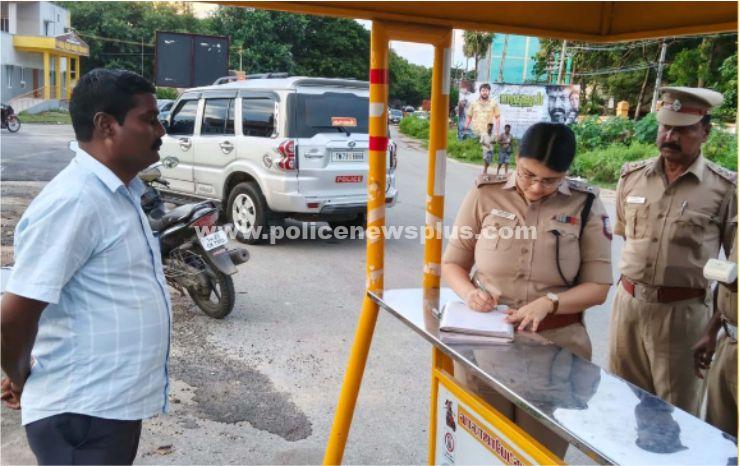 இராணிப்பேட்டை: இராணிப்பேட்டை மாவட்ட காவல் கண்காணிப்பாளர் திருமதி.அய்மன் ஜமால், இ.கா.ப., அவர்கள் வாலாஜாபேட்டை காவல் நிலைய எல்லைக்குட்பட்ட படவேட்டம்மன் கோவில் ஜங்ஷன் அருகே காவல்துறையினரின் வாகன தணிக்கையை திடீர் ஆய்வு செய்து வாகன ஓட்டிகளை பாதுகாப்பாகவும் கவனமாகவும் நிறுத்தி வாகன தணிக்கை மேற்கொள்ளுமாறு அறிவுரை வழங்கி பராமரிக்கப்படும் ஆவணங்களில் கையொப்பமிட்டார் .
