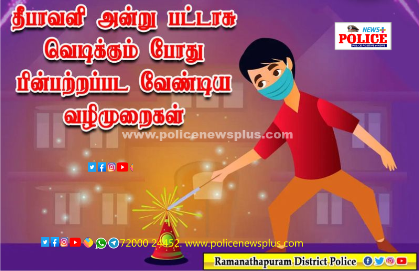 மேற்கண்டவாறு பாதுகாப்பான வழிமுறைகளைப் பின்பற்றி தீபாவளி கொண்டாட இராமநாதபுரம் மாவட்ட காவல்துறை சார்பாக கேட்டுக் கொள்ளப்படுகிறது.