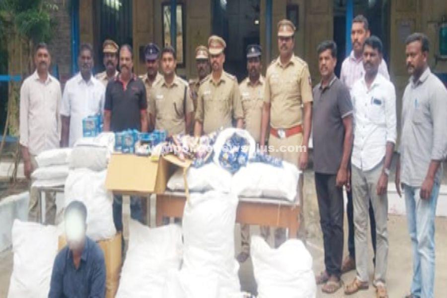 திருவாரூர் : திருவாரூர் மாவட்டம் மன்னார்குடி பகுதியில் அரசால் தடைசெய்யப்பட்ட போதைப்பொருட்கள் கடத்தப்படுவதாக மாவட்ட காவல் கண்காணிப்பாளர் அவர்களுக்கு கிடைத்த இரகசிய தகவலின் படி அமைக்கப்பட்ட தனிப்படை போலிசார் மன்னார்குடி சக்தி மரவாடி ரோடு அருகே வாகன தணிக்கை செய்த போது, அவ்வழியே வந்த TN 68 L 5150 என்ற Nissan Sunny காரை சோதனை செய்த போது அதில் 19 மூட்டைகளில் மறைத்து வைத்திருந்த 161.600 கிலோ கிராம் எடை கொண்ட (மதிப்பு சுமார் இரண்டு லட்சம் ரூபாய்) Hans, Cool lip, Vimal Panmasala, VI-Tobacoo Panmasala ஆகிய அரசால் தடைசெய்யப்பட்ட போதைப்பொருட்கள் கைப்பற்றப்பட்டது. போதைப்பொருட்களை கடத்திய நபரை விசாரணை செய்த போது மன்னார்குடி அரிசி கடை சந்தை சேர்ந்த ஷேக் தாவுது மகன் ஹாஜா மைதீன் என்பது தெரிய வந்தது. அவர் மீது வழக்குப்பதிவு செய்யப்பட்டு கைது செய்யப்பட்டார். சிறப்பாக செயல்பட்ட மன்னார்குடி காவல் துணை கண்காணிப்பாளர் திரு.A.அஸ்வந் ஆண்டோ ஆரோக்கியராஜ் மற்றும் காவலர்களை மாவட்ட காவல் கண்காணிப்பாளர் திரு.T.P.சுரேஷ் குமார் அவர்கள் பாராட்டினார்கள்.
